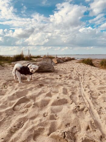 Ein Tag am Strand ist für viele Fellnasen ein absolutes Highlight und bietet Entspannung pur im Niedersachsen Urlaub mit Hund.