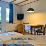 modern ausgestattete Ferienwohnung im 2. OG mit Balkon am Schlafzimmer und am Wohn-Esszimmer, bodengleiche Dusche, separate Küche.