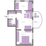 Der Grundriss kann je nach Wohnung leicht vom Original abweichen. Die Abbildungen sind unverbindlich. Alle Zimmer und Ferienwohnungen sind individuell eigerichtet und unterscheiden sich in der Anordnung und Möblierung.