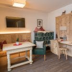 Diese neuen, modernen und barrierefreie Suiten bieten viel Platz zum Entspannen. Die Einrichtung in Naturholzmöbeln, sowie die feine Auswahl der bunten Stoffe verleihen den Suiten eine stimmige und heimelige Atmosphäre. Selbstverständlich wurde auch das Badezimmer behindertengerecht ausgestattet. Frisches Zillertaler Bergquellwasser zur Begrüßung.