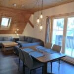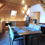 Unser Sternenblick liegt unter den Sternen und vom Wohnzimmersofa sowie vom oberen Schlafzimmer aus (dieser Raum kann separat dazu gebucht werden) können Sie diese beim Blick durchs Fenster fast greifen. Sie ist durch viel Holz sehr heimelig und kann durch ihre Größe mit 3 Schlafzimmern bis zu max. 7 Personen aufnehmen. Aber auch für zwei Personen ist sie sehr gut geeignet, die obere Etage muss nicht dazu gemietet werden. Dann ist sie einfach großzügig geschnitten und man hat viel Platz mit bereits 2 Schlafzimmern. Der offene Küchen-/Wohn-/Essbereich geht über die gesamte Breite des Hauses und bietet einen traumhaften Blick über das Tal, egal ob von drinnen oder vom Balkon aus. Einen echten Kaminofen gibt es aufgrund der Brandgefahr in dieser Wohnung nicht, aber dafür einen Elektrokamin, der mit schönem Flammenspiel eine kuschelige Atmosphäre zaubert.