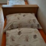 Unsere Ferienwohnung befindet sich im ersten Stock ist ca. 125 m² groß . Es stehen fünf Schlafzimmer, eine Wohnküche, zwei Bäder (1 x Dusche & Toilette getrennt) und zwei Vorräume zur Verfügung. Somit bietet sich genug Platz für bis zu maximal 10 Personen an (Kinderbett & Hochstuhl möglich).