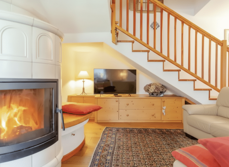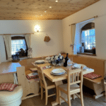 Das Chalet erstreckt sich über zwei Etagen und verbindet alpinen Charme mit großzügigem Wohnkomfort. Im Erdgeschoss erwartet Sie ein helles, geräumiges Wohnzimmer mit gemütlichem Ofen und großem Holztisch – der ideale Ort für entspannte Abende in geselliger Runde. In einem separaten Raum befindet sich die voll ausgestattete Küche mit allen notwendigen Geräten. Ein Badezimmer komplettiert diese Etage.