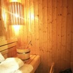 Im Bad mit eigener Sauna haben Sie die Wahl – die kalte Dusche nach dem Saunagang ist ebenso möglich wie ein ausgiebiges, warmes Schaumbad.