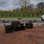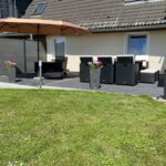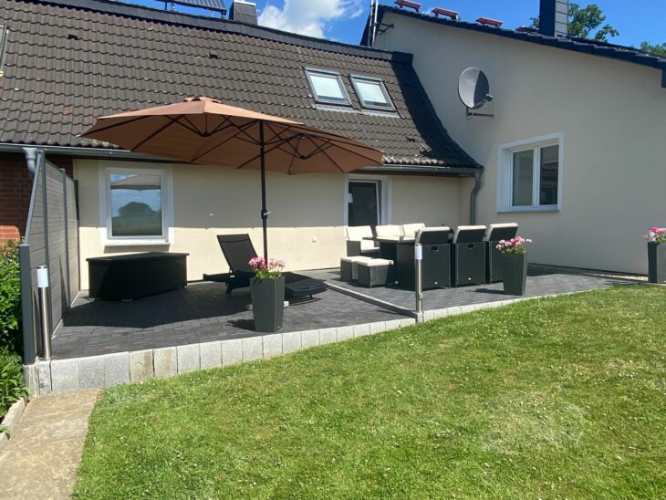 Die FeWo besitzt eine gemütliche Terrasse mit Blick auf die Stepenitz und die große Wiese.