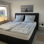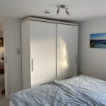 Zudem steht im Schlafzimmer ein gemütliches Boxspringbett und ein großer Kleiderschrank. Ein kleines Babybett oder ein gemütliches Hundekörbchen passt auch direkt neben dem Bett.