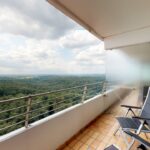 Der Balkon mit Traumaussicht bietet Ihnen ein lauschiges Plätzchen in luftiger Höhe bis in die späten Abendstunden.