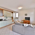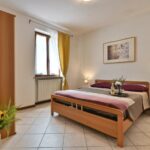 Im Erdgeschoss befinden sich zwei Dreizimmerwohnungen mit ein großes Wohnzimmer mit Küchenzeile und Doppelschlafsofa, ein Badezimmer mit Dusche, ein Schlafzimmer mit Doppelbett und ein Balkon mit Blick auf die Altstadt, den Gardasee und den Monte Baldo.