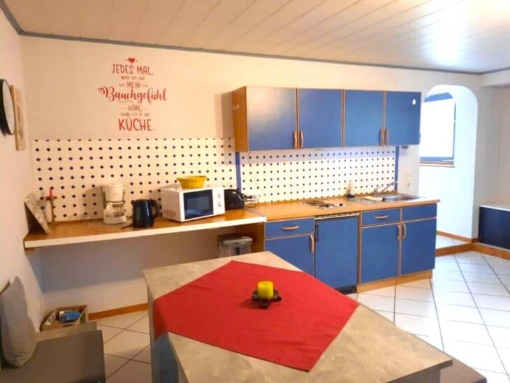 Sie wohnen in einer Ferienwohnung für 2-4 Personen mit voll ausgestatteter Küche. Draußen ist eine Sitzecke im Freien eingerichtet (Südseite), ideal zum Frühstücken!
