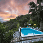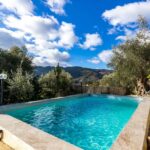 Das alleinstehende und komplett eingezäunte Ferienhaus liegt inmitten einer sehr ruhigen und bergigen Landschaft auf ungefähr 550 Höhenmetern, ungefähr 15 km vom Strand entfernt.