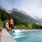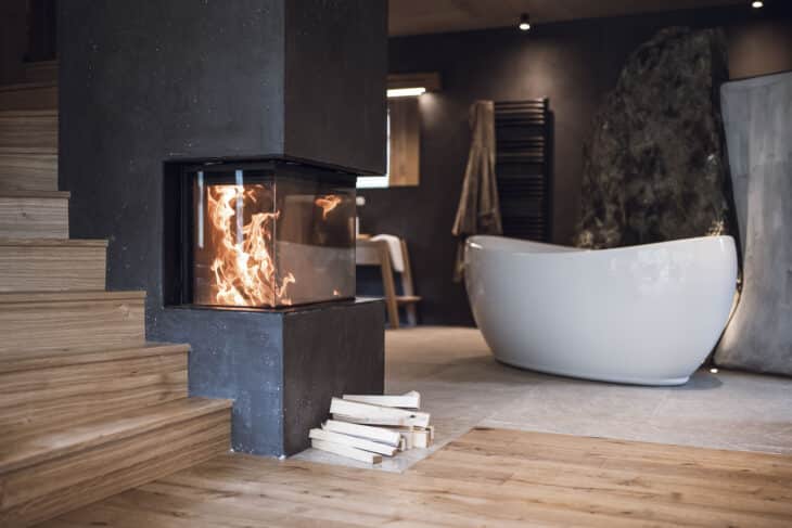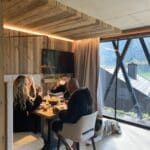 Unsere Suiten im Haupthaus haben eine herrliches Aussicht aus den oberen Stockwerken über das gesamte Tal. Dort findet Ihr ein Badezimmer mit abgetrenntem WC und Dusche. Ein Doppelbett und dazu ein Schlafsofa. Eine kleine Küchenzeile und Esstisch zum selber kochen. Das Frühstück wird direkt in die Suite geliefert. Zudem habt Ihr eine tolle Auswahl von Südtirolern Weinen und Getränken zum Ausprobieren. Die Nutzung des 360° Montium Pool auf dem Dach des Hauptgebäude ist im Preis inbegriffen.