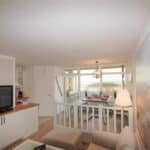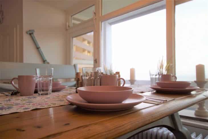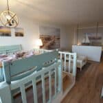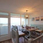 Passend dazu lädt die schöne Essecke, die etwas erhöht auf einem Podest liegt, zum langen Frühstücken ein. Hier können Sie mit einem Becher Kaffee den herrlichen Ausblick auf die Ostsee genießen.