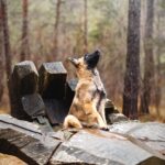 Gemütlich zusammen sitzen. Wandern mit dem Hund.