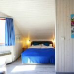 Über die Treppe gelangen Sie im Obergeschoss zunächst auf die offene Galerie. Hier befinden sich ein Doppelbett, eine Kommode und ein Lesesessel. Nebenan folgt das Kinderschlafzimmer mit zwei Einzelbetten und einem Kinderbett.