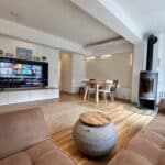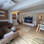 Es handelt sich um eine Ferienwohnung mit Terrasse und Gartenzugang. Es gibt eine geräumige und komfortabel ausgesattete Küche mit Backofen, Spülmaschine, Nespresso-Kaffeemaschine und großem Kühlschrank. Die Wohnung verfügt über 1 Schlafzimmer mit Doppelbett. Im offenen Wohnbereich gibt es bequeme Schlafplätze für 2 weitere Personen (Schlafsofas). Alle Bereiche der Wohnung sind privat und werden nur von euch genutzt. Der Garten darf gerne mitgenutzt werden. Der Hausflur/Eingangsbereich wird mit zwei weiteren Parteien gemeinsam genutzt. Ebenso die Waschküche: Hier stehen Waschmaschine und Trockner zur kostenfreien Nutzung gern zur Verfügung. Natürlich gibt es gratis WiFi & einen großen Samsung Smart-TV.