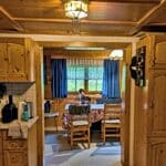 Die Landhausküche ist mit Geschirrspüler, Backofen mit Ceran-Kochfeld, altem Holzherd und jeglichen Küchengeräten perfekt ausgestattet. Dort lassen sich auch aufwändige Gerichte gut zubereiten, und die offene Architektur zur alten Stube sorgt für Geselligkeit und Kommunikation. Schöne Tischwäsche, edles Geschirr und Gläser vom Designer machen das gemeinsame Essen zum Erlebnis. Ein extra Lesezimmer bietet einen Rückzugsraum für Ruhe oder wenn die Kids mal unter sich sein wollen.
