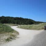 Radfahren auf der Dünenkrone mit Blick auf Meer und