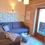 In unsere Fewo Blueberry (ca. 45m²) schließt die Küche an den Wohnbereich mit ausziehbarem Sofa an.