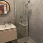 Neben dem Schlafzimmer geht es ins neue Badezimmer mit großer Dusche und WC.