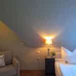 Das Familienzimmer mit Blick auf das Schloss besteht aus einem Wohn-Schlafbereich mit Esstisch und Schlafcouch sowie einem separaten Schlafzimmer. eine weitere Aufbettung ist möglich.