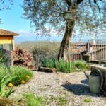 Von hier aus haben Sie ein weites fantastisches Panorama auf Wälder, Olivenhaine und die Ebene des ehemals größten nun trockengelegten See's der Toskana, dem "Lago di Bientina". Eine Steintreppe führt Sie zur 2. Terrasse mit dem Eingang zum Apartment.