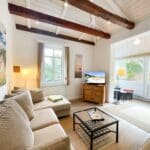 Die Loggia lässt sich bei Bedarf mit einer ausziehbaren Doppelcouch und einem Vorhang abtrennen, sodass die Wohnung auch für kleine Familien oder Freunde noch mehr Raum bietet. Die flexible Raumaufteilung macht „Mönchgut“ zu einer echten Wohlfühloase – ob für Paare, kleine Familien oder Freunde.