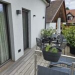 - Privatterrasse oder Balkon mit Blick ins Grüne auf unsere Streuobstwiesen
