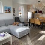 Das große und gemütliche Sofa im Wohnzimmer ist ein ausziehbares Gästebett (140x200) und eignet sich als Übernachtungsmöglichkeit für zwei Personen.