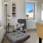 Die Wohnung im Erdgeschoss liegt direkt am Deich, nur rund 30 Meter von der Orther Bucht entfernt. Sie bietet viel Platz und eignet sich für zwei bis maximal vier Personen. Ideal gelegen für Wassersportler und alle, die den Meerblick lieben.
