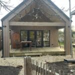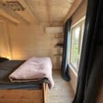 Des Weiteren befindet sich das Schlafzimmer mit einem 1,40 m Doppelbett, in einem separatem Zimmer. Über eine Leiter gelangen Sie auf den gemütlichen Dachboden, der ebenfalls als Schlafraum genutzt werden kann. Eine überdachte Terrasse, lädt zum Verweilen ein.