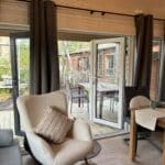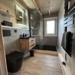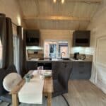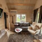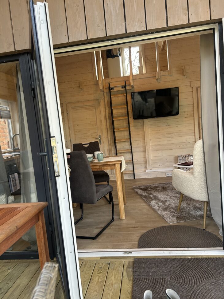 Unten erwartet Sie ein offener Bereich, indem sich die Küche, und das Wohnzimmer, inklusive Gästebett befinden. Das Bad mit Dusche ist im Nebenraum.