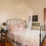 Etage „Hortensie“: Über eine Holztreppe gelangst du ins Durchgangszimmer „Minze“ mit Arbeitsecke, Einzelbett (90×190) und Zugang zur zweiten Südost-Terrasse. Dahinter liegt das Schlafzimmer „Hortensie“ mit französischem Bett (140×200) und Blick über die Täler.