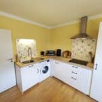 Die Unterkunft verfügt über ein gemütliches Schlafzimmer, eine voll ausgestattete Küche mit Essbereich, ein schönes Badezimmer und ein helles Wohnzimmer, das sich mit einem Schlafsofa für zwei Personen leicht in ein zweites Schlafzimmer verwandeln lässt.