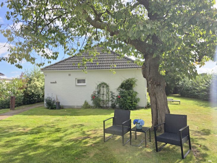 Schöner ebeneriger Einzelbungalow mit Platz für 4 Personen auf eine großen Grundstück. Der Wohnraum und der angegliederte Essbereich sind grosszügig gehalten.