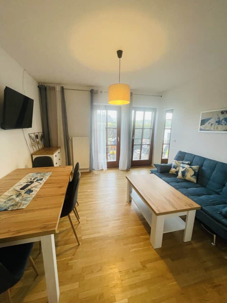 Das Apartment verfügt über ein komfortables Schlafzimmer sowie ein Wohnschlafzimmer, das zusätzlichen Raum zum Entspannen bietet. Eine voll ausgestattete Küche lädt zum gemeinsamen Kochen ein, während Bad und separates WC für zusätzlichen Komfort sorgen. Die freundliche, helle Atmosphäre macht es leicht, sich vom ersten Moment an wie zuhause zu fühlen.
