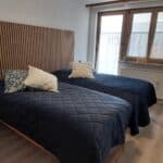 Im Erdgeschoss befinden sich die Küche, Bad/Dusche mit Waschmaschine/Trockner, WC/Dusche sowie ein Wohn- und Schlafzimmer. Im Obergeschoss befindet sich ein weiteres Schlafzimmer. Auf Wunsch steht ein Kinderbett für Kleinkinder zur Verfügung. Im Aussenbereich stehen ein Sitzplatz und ein Parkplatz zur Verfügung. Bei Bedarf kann der E-PKW an der Wallbox (max. 22Kw) geladen werden.